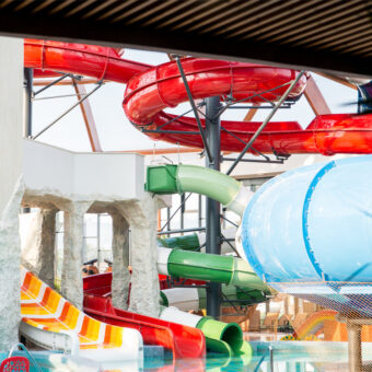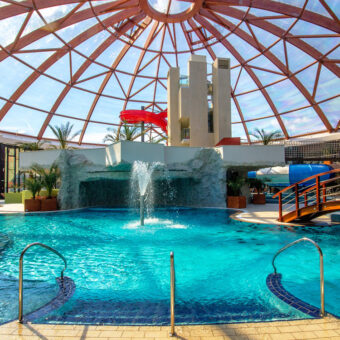 Și în interior te așteaptă 4 bazine distractive. Pe lângă acestea există și 2 jacuzzi-uri în care te poți relaxa și bucura de un hidromasaj pe cinste.